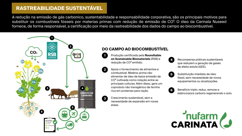 Óleo não comestível, certificado como sustentável e cultivado entre a rotação das principais culturas
